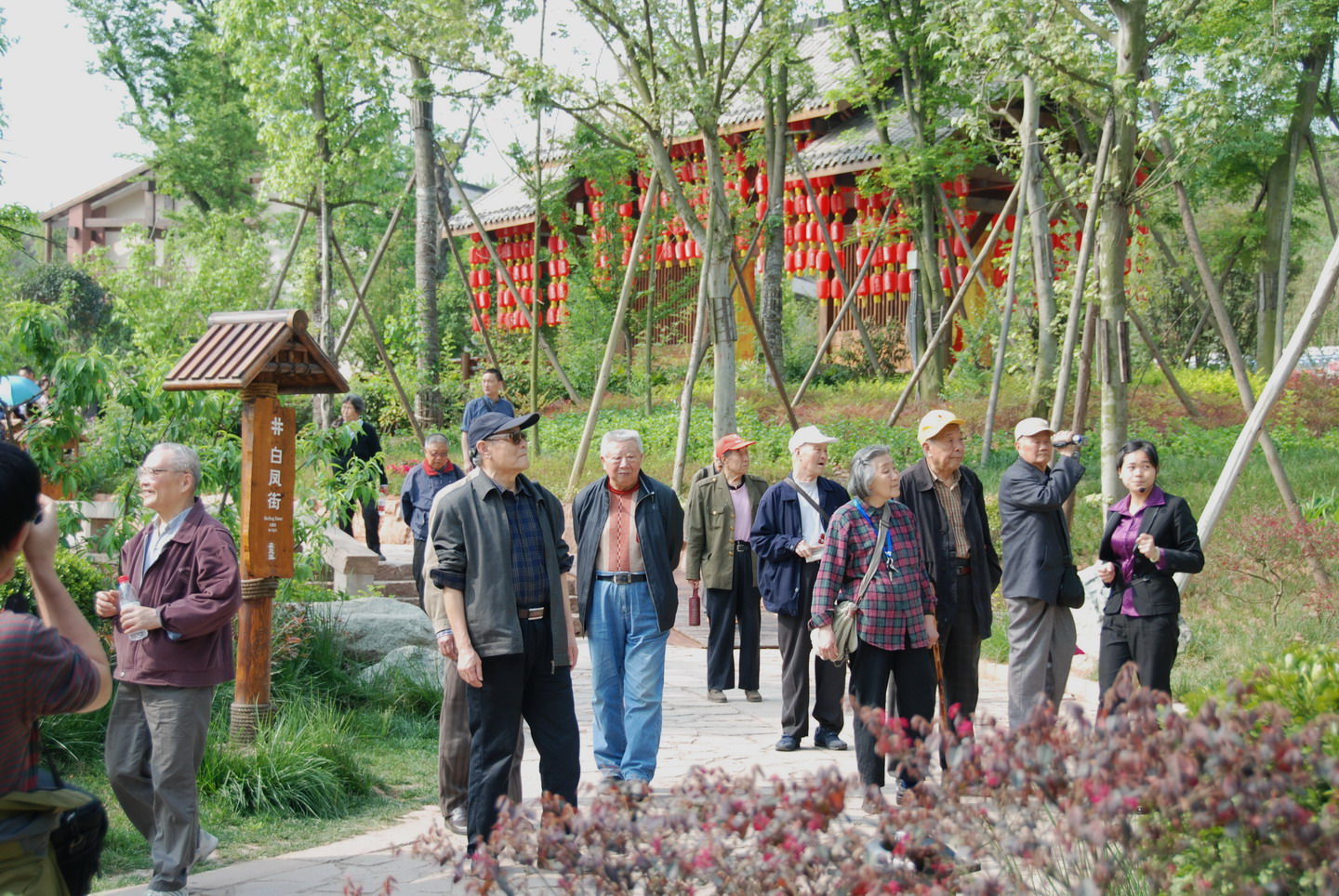 4月16日,離退休處組織我校離休干部和退休局級干部游覽金堂五鳳溪