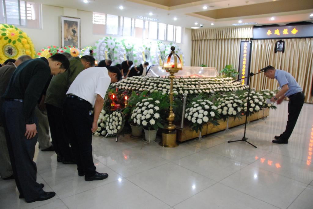 上午9時(shí)30分,孫一平、李士倫等在哀樂(lè)聲中緩步來(lái)到張九山同志的遺體前肅立默哀,向張九山同志的遺體三鞠躬,并與張九山同志親屬一一握手,表示慰問(wèn)。