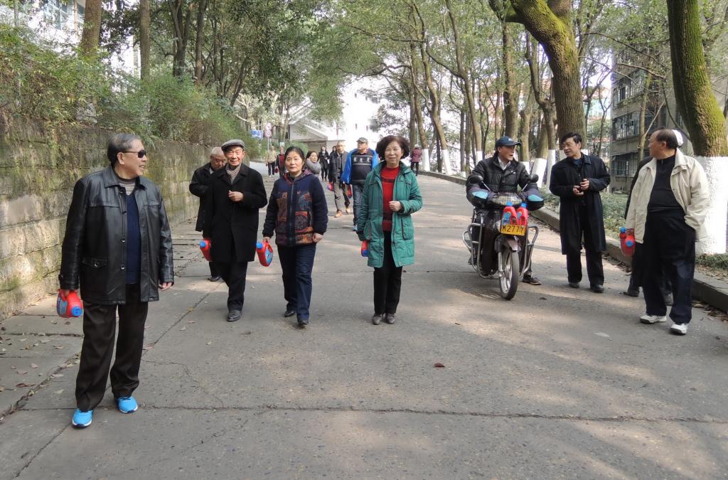 離退休人員慶祝三八國際婦女節校園健步走活動今日在成都、南充兩校區舉行,700余名老同志參加了本次活動。圖為成都校區活動場景