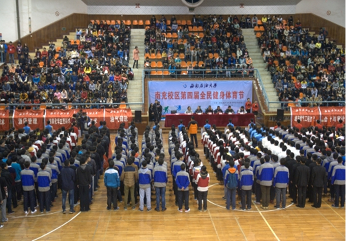 11月28日晚,南充校區第四屆全民健身體育節在體育館開幕, 校區黨委副書記王勝軍、覃鴻飛,后勤服務公司總經理張輝耀、副總經理李平和校區師生一千余人參加了開幕式。