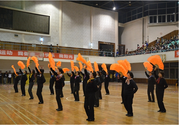 開幕式上,離退休教職工表演了《單扇健身操》,翻動的單扇,婉轉的樂曲,輕盈的舞步,迎來了觀眾們的喝彩。