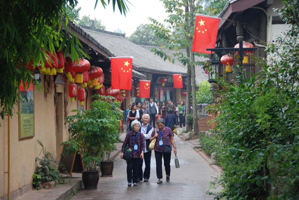 10月8—10日,離退休工作處組織我校成都校區離退休人員游覽了金堂五鳳古鎮、成華區龍潭水鄉,組織部分離退休人員到石油緣賓館聚會,440余名離退休人員參加了本次秋游活動。圖為老同志游覽金堂五鳳古鎮。