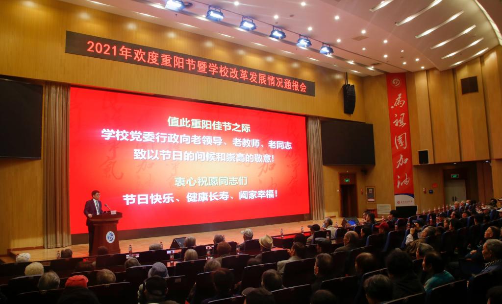 歲歲重陽,今又重陽,10月14日,學校在圖書館報告廳召開歡度重陽節(jié)暨學校改革發(fā)展情況通報會,校長趙金洲向離退休老同志通報了學校改革發(fā)展情況。