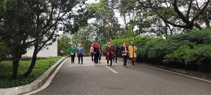 會后,兩校區老同志按照重陽節健身走活動規劃路線,三五成群、興高采烈地完成了校園健身走。