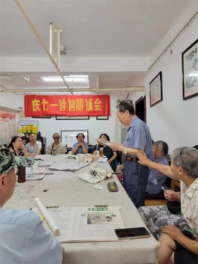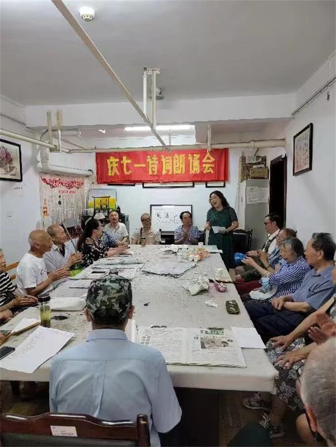 七月一日上午,離退休工作處頤年詩書畫社在該社活動室組織舉行了一場“慶七一詩詞朗誦會”,23位社員參加活動。活動由張潤民主持。