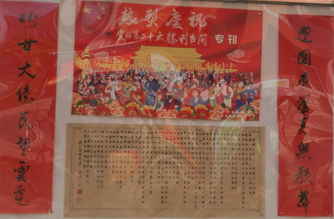 黨的二十大開幕會召開當天,經過認真審稿和嚴格挑選,“熱烈慶祝黨的二十大勝利召開”專題櫥窗展出。櫥窗籌備中,離退休老同志踴躍參加、認真創作、積極投稿,充分表達了他們對中國共產黨的愛護擁戴。