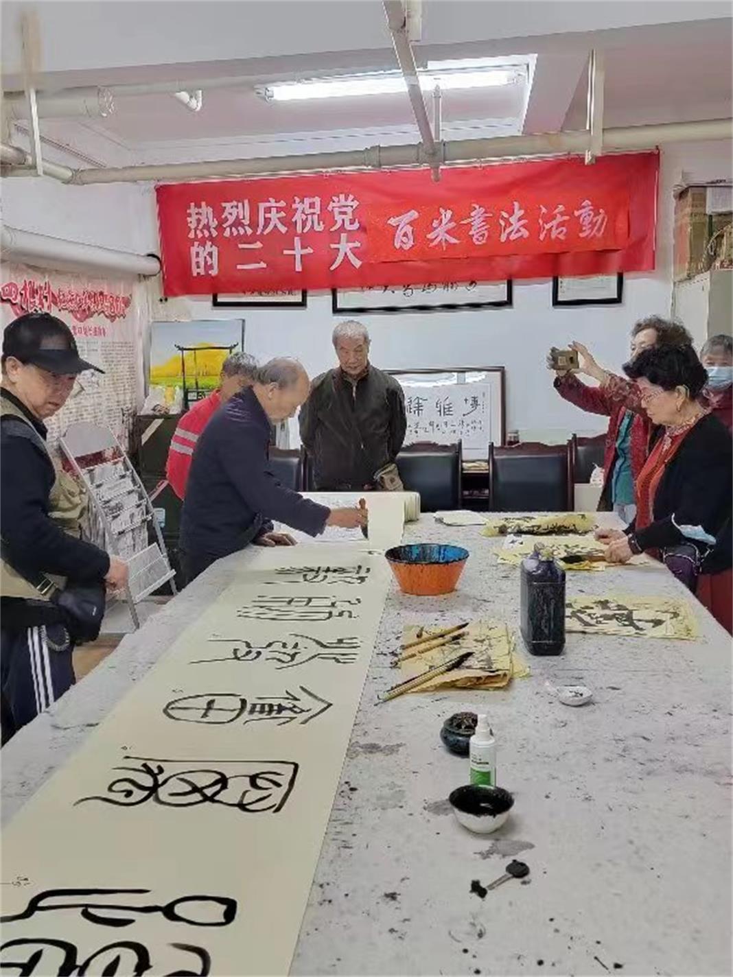 2022年10月20日,舉行“慶祝黨的二十大勝利召開百米長卷現場書法”活動。百米書法現場,21位老同志或飽蘸濃墨、或氣凝神靜、或龍飛鳳舞,用翰墨記錄新時代、書寫新時代、謳歌新時代,表達了離退休老同志對黨的二十大勝利召開的喜悅之情。