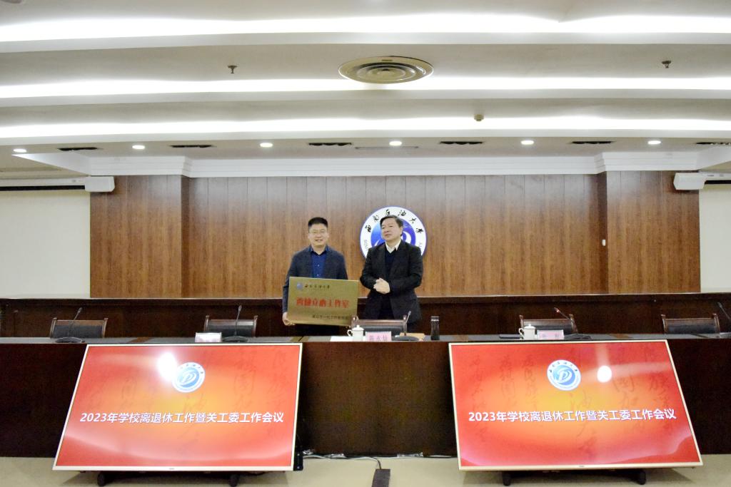 離退休黨委書記吳本元傳達學習了中央關于做好新時代離退休干部黨的建設和關心下一代工作委員會工作的文件精神,離退休工作處處長侯忠建安排部署了2023年學校離退休和關工委工作。會上還舉行了“西柚立心工作室”授牌儀式。