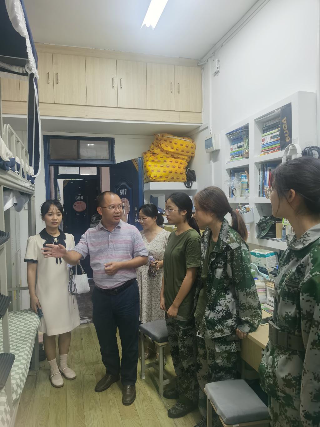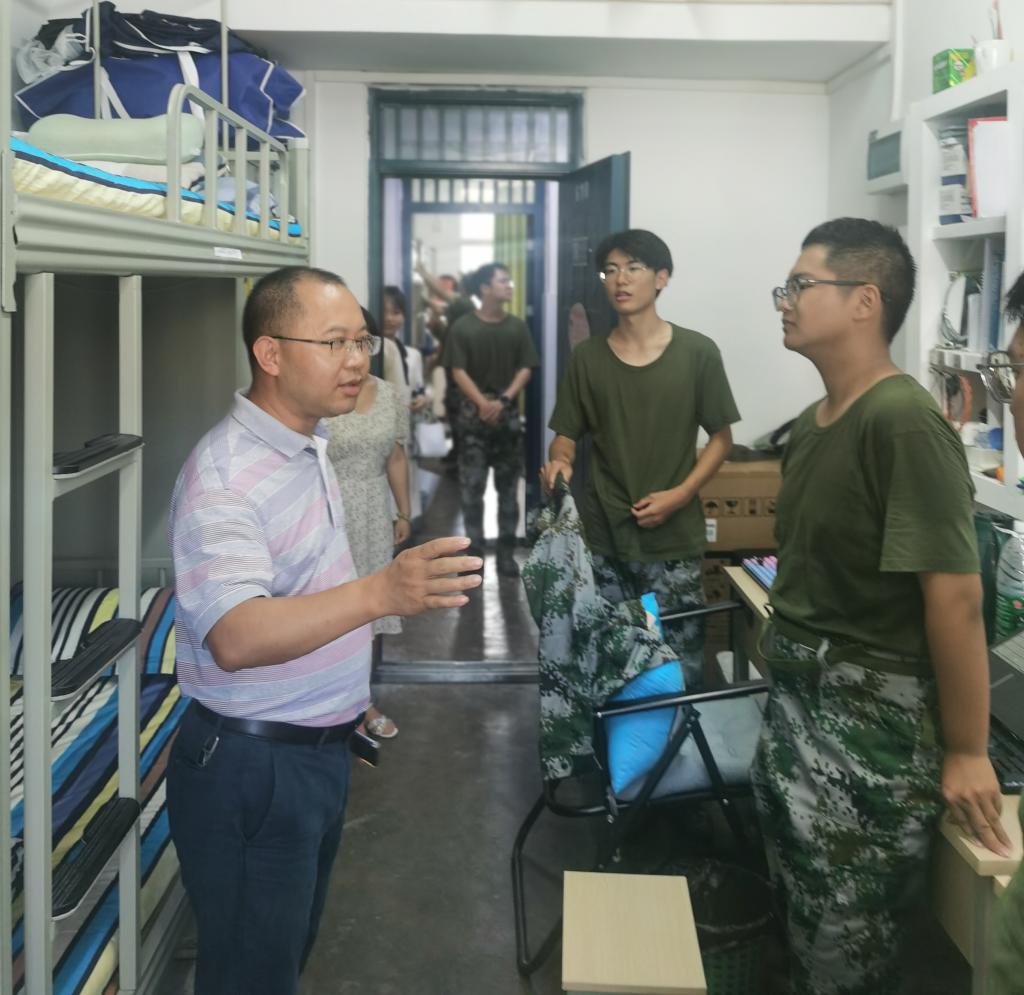 8月30日下午,學院副院長稅正偉率隊一行前往學生宿舍,走訪看望了學院在南充校區的2022級學生軍訓情況。學院綜合辦公室主任馮瓊、學生辦公室副主任薛靜、光電教研室主任侯俊勇、電科教研室主任武新慧、2022級輔導員劉培參加了活動。