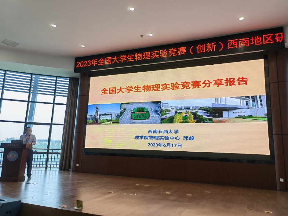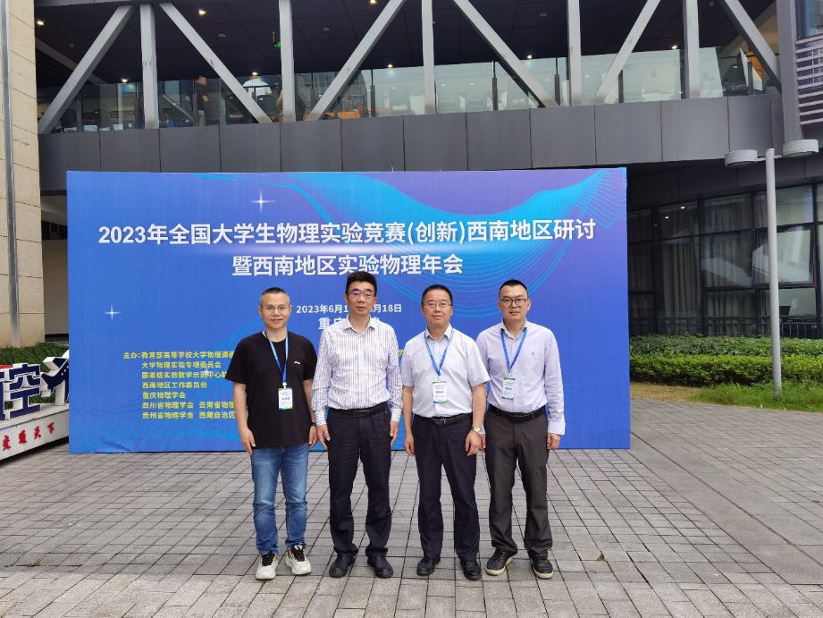 6月16日至18日,2023年全國大學生物理實驗競賽(創新)西南地區研討暨西南地區實驗物理年會在重慶江津召開。理學院黨委書記劉廷平帶隊,“雙帶頭人”大學物理黨支部書記伍振海、物理實驗中心主任邱毅參加會議。邱毅老師受邀為大會作了“全國大學生物理實驗競賽分享報告”。