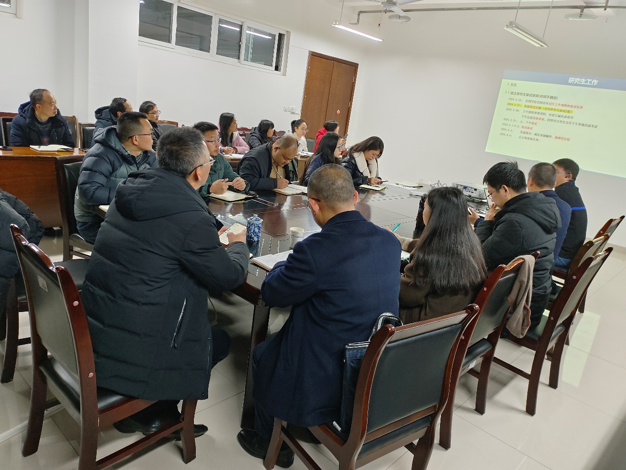 會上,各位領導對假期工作進行了總結,同時暢談了新學期重點工作及近期工作安排。閔超副院長對2023年科研工作情況進行了深入分析,并根據存在的問題與困難提出了2024年科研工作的思路與舉措;李玲娜副院長首先給大家介紹了學院各專業的軟科排名情況,重點匯報了學院學科競賽、教學競賽、課程、教材等教學資源建設等工作;王茂江副書記對學院考研就業、訪企拓崗等情況進行了匯報,并就在假期中針對突出問題擬定的提升方案跟大家進行了分享;稅正偉副院長全面介紹了學院南充校區的教學、科研、學生工作、師資隊伍等情況,并重點匯報了自己對近期及以后一段時間工作的思路。