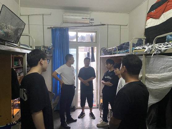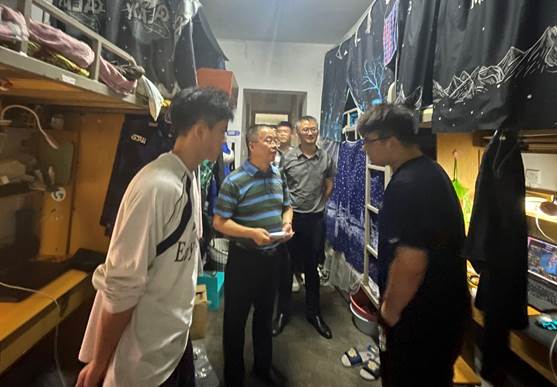 圖一 學(xué)院領(lǐng)導(dǎo)老師走訪本科畢業(yè)生男生寢室
