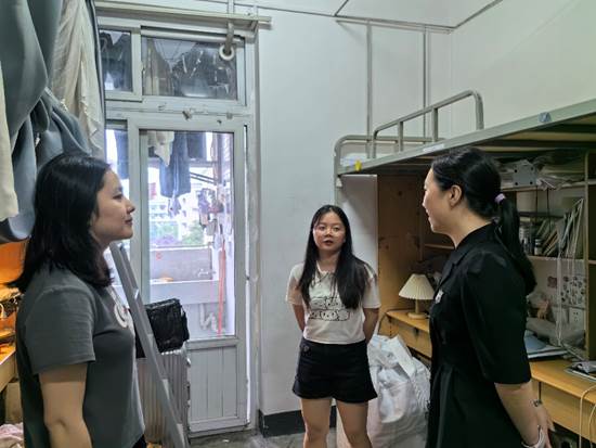 圖四 學(xué)院領(lǐng)導(dǎo)老師走訪本科畢業(yè)生女生寢室