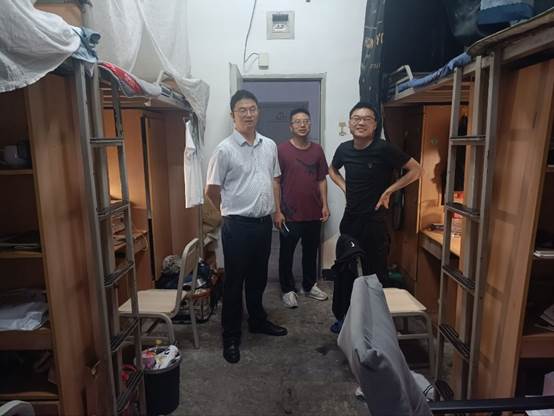 圖三 學(xué)院領(lǐng)導(dǎo)老師走訪研究生畢業(yè)生男生寢室