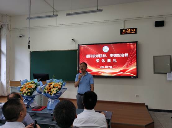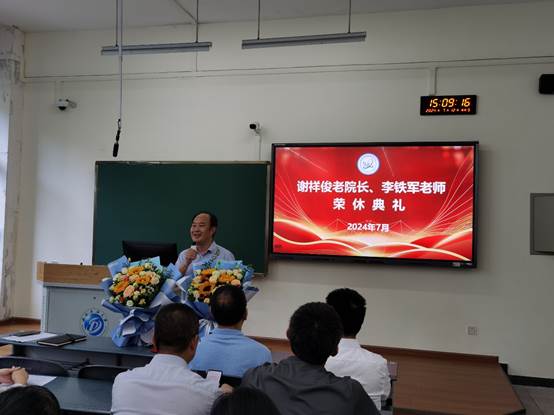 7月12日下午,理學(xué)院在明理樓B203教室召開教職工大會,為學(xué)院謝祥俊老院長及李鐵軍老師舉行榮休儀式。會議由學(xué)院黨委書記楊雁主持。
