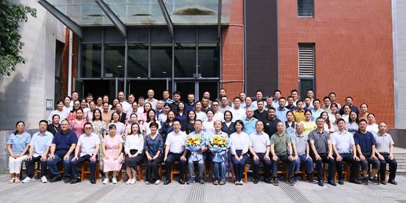 學(xué)院全體教職工與兩位榮休教師合影留念