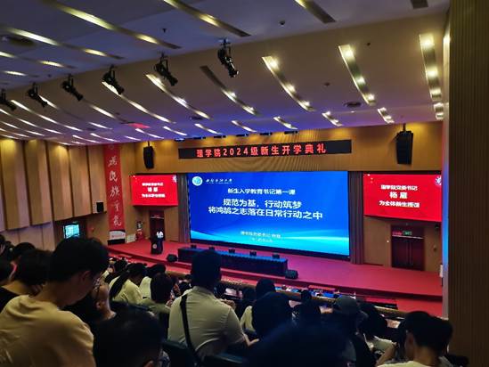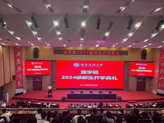 金秋九月,丹桂馥郁。2024年9月7日下午,理學(xué)院成都校區(qū)2024級(jí)新生開學(xué)典禮暨書記院長一堂課在圖書館學(xué)術(shù)報(bào)告廳舉行。來自全國各地的267名本科新生和119名研究生新生齊聚一堂,共同開啟人生的新篇章。典禮由理學(xué)院黨委副書記王茂江主持,學(xué)院領(lǐng)導(dǎo)班子全體成員、全體中層干部、青年教師代表、2024級(jí)新生輔導(dǎo)員、高年級(jí)學(xué)生代表、2024級(jí)全體新生參加。