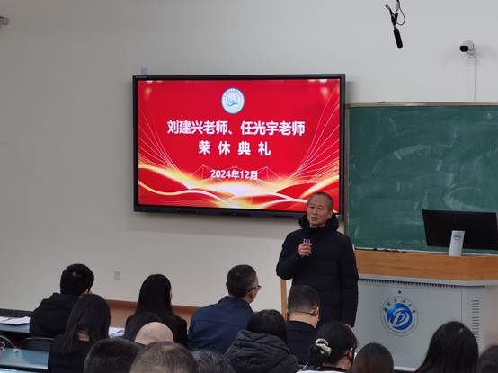 劉建興、任光宇兩位老師分別發表榮休感言,他們表達了對學院的感激與不舍之情,以及能繼續在青年教師培養等方面繼續發揮余熱的愿望,并祝福學院發展得越來越好。