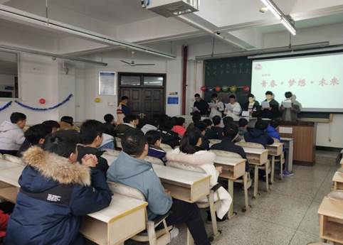 開場的歌曲“我的未來式”,以熟悉的旋律喚醒了同學們內心對于未來的憧憬,突出了本次團會的主題“新時期我們的未來”。隨后的朗讀“青春、夢想、未來”即給出答案——緊跟黨的步伐,堅持用新時代思想武裝頭腦,腳踏實地志存高遠,不忘初心,方得始終,方能做時代的弄潮兒。簡單的有獎問答加強了大家對新時代的理解。最后,同學們交流了一學期來的收獲,相互提出問題并加強改正,現場響起了熱烈的掌聲,這既是同學們對自我的肯定,又為此次活動畫上了圓滿的句號。
