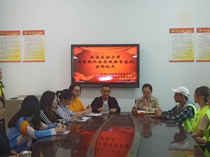 2019年4月18日下午14:00,西南石油大學理學院社會實踐服務基地掛牌儀式在桂湖小學隆重舉行。據悉,出席此次儀式的有桂湖小學校長康平、西南石油大學理學院團委副書記伍悅老師、桂湖小學教導主任薛慶以及桂湖小學部分老師和理學院青志協部分志愿者。