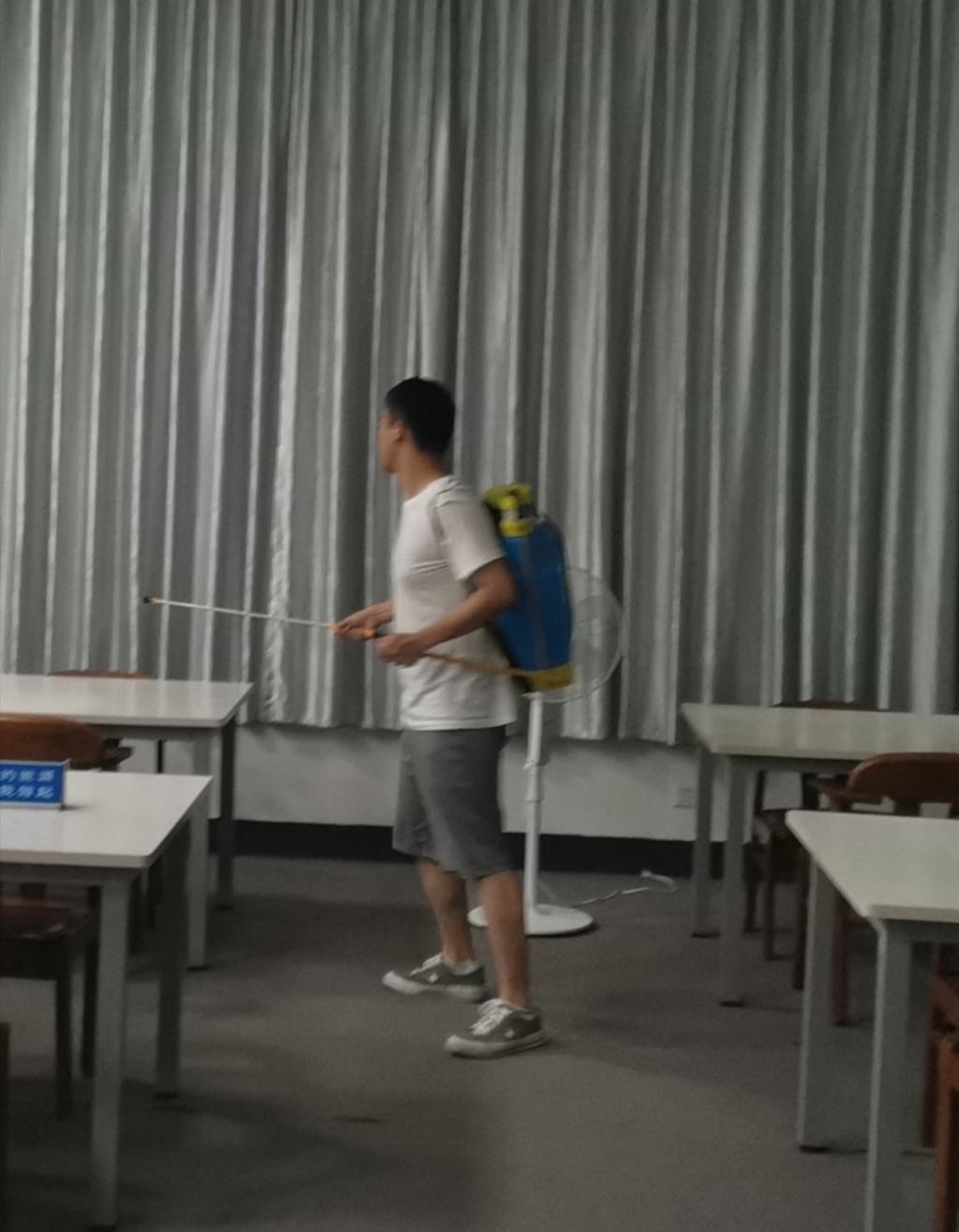 圖書館作為傳承文明、服務社會的重要場所,人員流動量大且繁雜,雖疫情防控取得了一定成績,但卻不可麻痹大意。志愿服務期間,時培人負責為顧客測量體溫,要求顧客佩戴好口罩做好防護,同時,實名登記顧客的姓名、電話等相關信息,在落實好防疫要求的基礎上有序復工。疫情當前,公共場所的防控消殺是必須且必要的,晚上閉館期間,時培人協助館內工作人員完成對圖書館的全面消殺工作,遵守消殺規定,在不損壞館內圖書資源的前提下不放過任何一個角落。