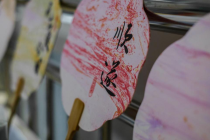 圖2 理學(xué)院學(xué)生會(huì)成員漆扇作品展示
