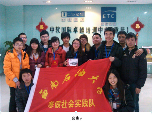 1月15日,由理學院任太強、楊茂、王芙蓉等學生組成的寒假赴中軟國際社會實踐隊,在重慶西永微電子產業園中軟國際西南區人才培訓基地開始了實踐之旅。本次實踐通過參加為期16天的職能培訓冬令營,零距離接觸真實的軟件企業,所有隊員深刻地感受到了IT企業文化的內涵。