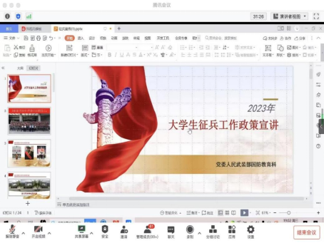 為幫助學生了解國家大學生征兵入伍政策,鼓勵學生積極參軍入伍,提高兵員征集質量,理學院于5月10日晚7時在騰訊會議線上平臺召開征兵政策宣講及軍營經驗交流分享會。會議由2020級退役大學生士兵張玉龍和譚雙雙主講,理學院征兵工作負責老師李夢主持,各年級100余名同學參與。