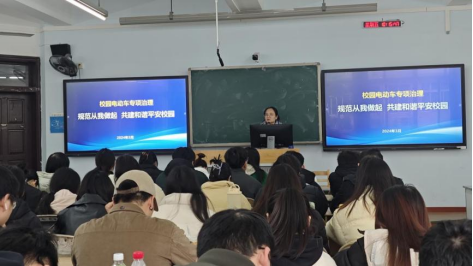 繼“開學安全第一課”之后,伍悅進一步講解了校園電動車綜合治理相關內容,從“為什么要開展校園電動車專項治理”、“電動車專項治理有什么要求”、“校園電動車專項治理,我們應該怎么做”、“有關事項和特別提醒”四大方面進行了詳細講解。