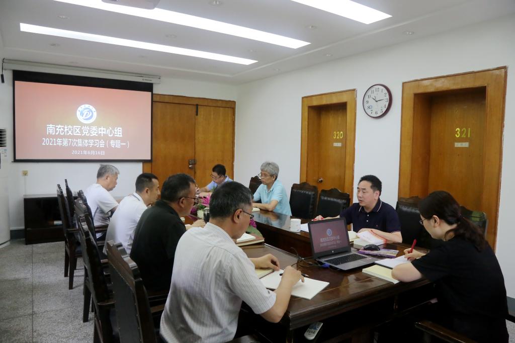 6月16日,南充校區黨委中心組舉行2021年第7次集體學習會,專題學習新民主主義革命時期歷史。校長助理、南充校區黨委常務副書記張光君主持會議。南充校區領導趙剛、覃鴻飛、王勝軍、諶海云,黨政辦公室、黨群工作部(工會)有關同志參加學習。