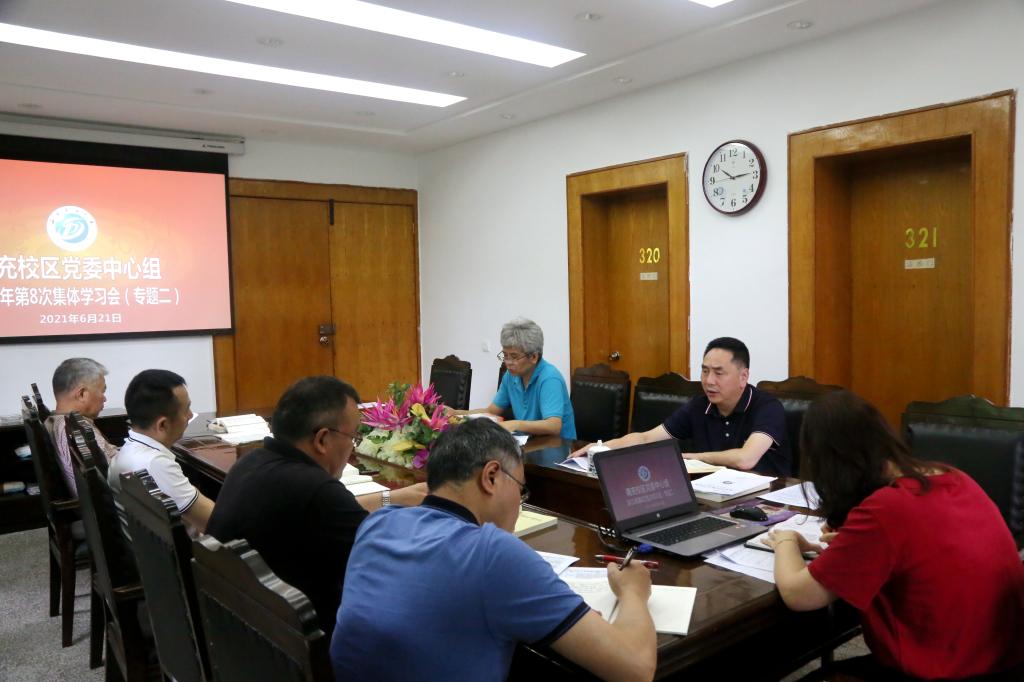 6月21日,南充校區黨委中心組舉行2021年第8次集體學習暨黨史學習教育第2次專題學習。校長助理、南充校區黨委常務副書記張光君主持會議。南充校區領導趙剛、覃鴻飛、王勝軍、諶海云,黨政辦公室、黨群工作部(工會)有關同志參加學習。