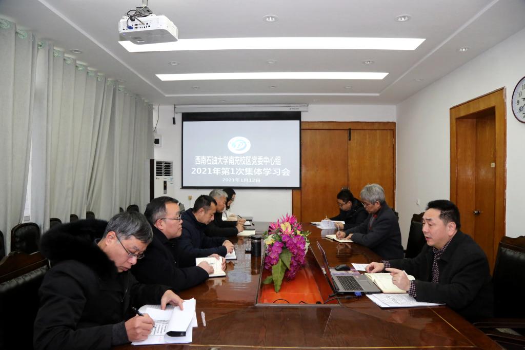 1月12日,南充校區黨委中心組舉行2021年第1次學習,校長助理、南充校區黨委常務副書記張光君主持學習會。校長助理、南充校區常務副校長趙剛,南充校區黨委副書記、紀委書記覃鴻飛,南充校區副校長王勝軍、諶海云,黨政辦公室、黨群工作部(工會)負責同志參加學習。