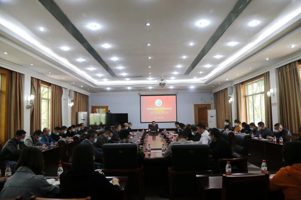 為深入學習貫徹習近平新時代中國特色社會主義思想和黨的十九屆六中全會精神,推動黨史學習教育常態化長效化,推進學習型、服務型、創新型單位建設,進一步轉變機關作風,提升工作效能,4月21日,南充校區“學習大講堂”開講。校長助理、南充校區黨委常務副書記張光君出席開班儀式并講授《談機關作風建設》黨課。校區機關職能部門、后勤服務公司等單位全體干部職工和教學單位機關部分同志參加開班儀式,聆聽黨課。開班儀式由黨政辦公室主任吳金城主持。