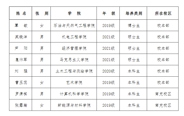 西南石油大學(xué)2023年學(xué)生“優(yōu)秀共產(chǎn)黨員”名單
