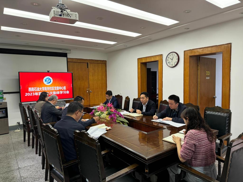 10月26日,南充校區黨委理論學習中心組舉行2023年第13次集體學習會。校長助理、南充校區黨委常務副書記張光君,駐校紀檢監察組副組長、校紀委副書記、南充校區黨委副書記、紀委書記范起東,南充校區副校長覃鴻飛、諶貴輝,黨政辦公室有關同志參加學習。