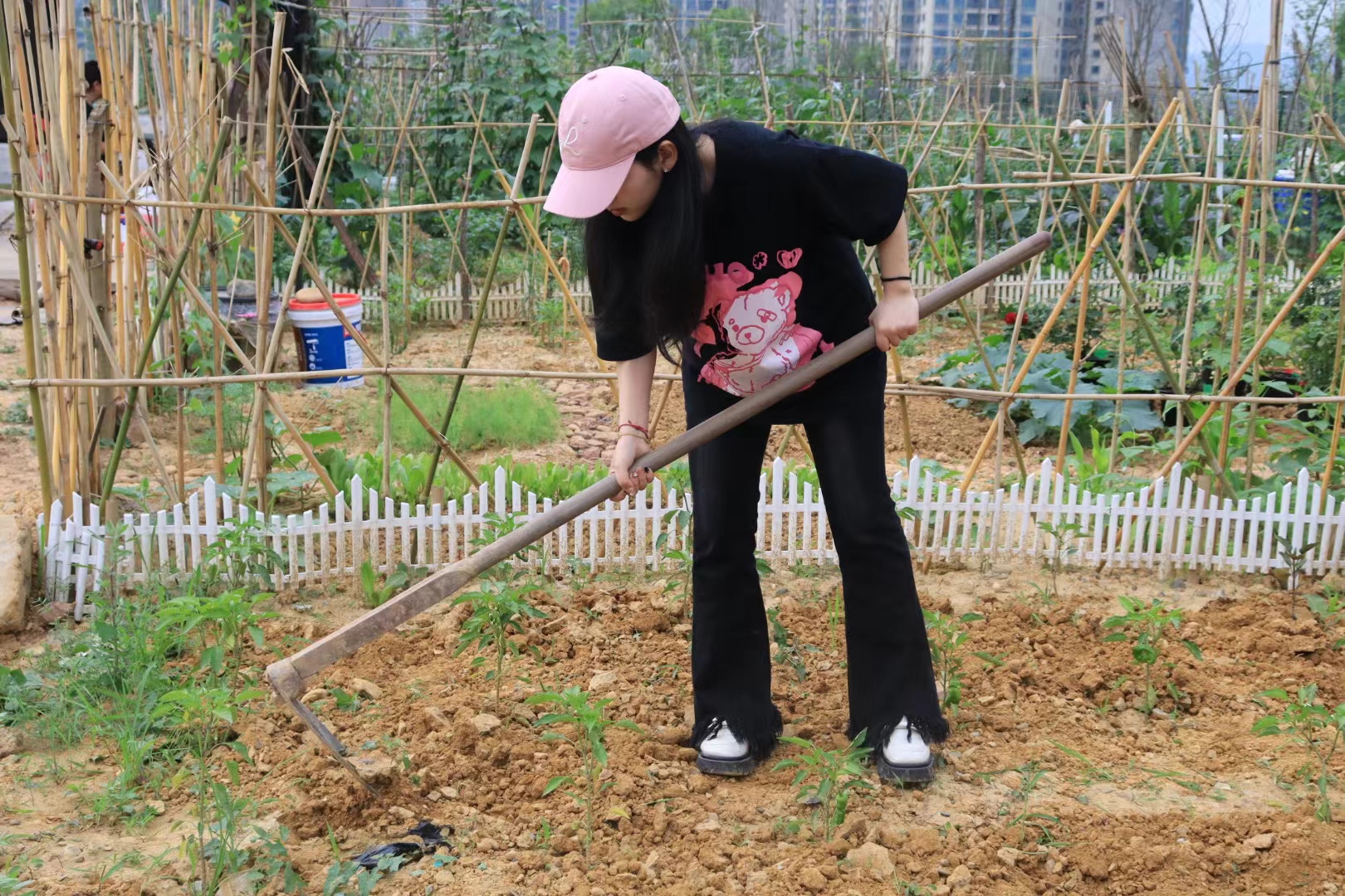 南充高級中學學生在支部黨員指導后自行進行鋤地
