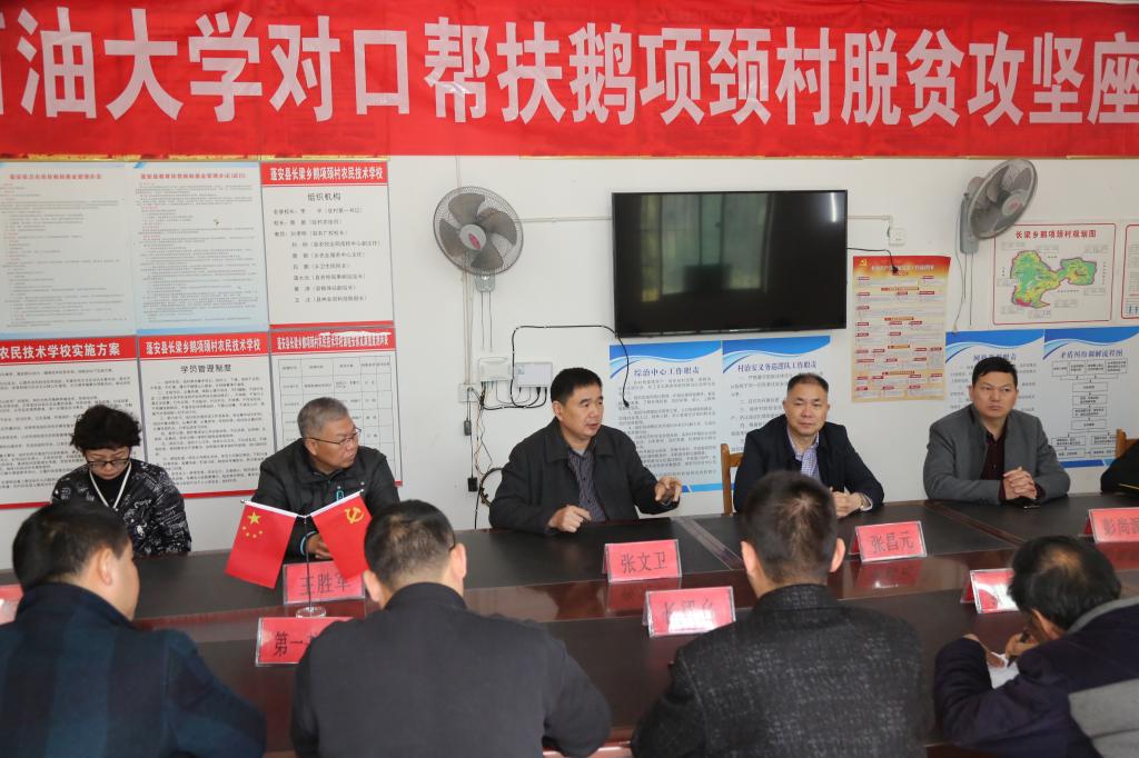 張文衛(wèi)表示,西南石油大學(xué)會一如既往地對鵝項(xiàng)頸村進(jìn)行幫扶,2019年對口幫扶工作還要早做規(guī)劃,繼續(xù)做好黨組織和脫貧群眾結(jié)對幫扶等工作,對村上提出的相關(guān)問題將積極研究幫助推動解決。
