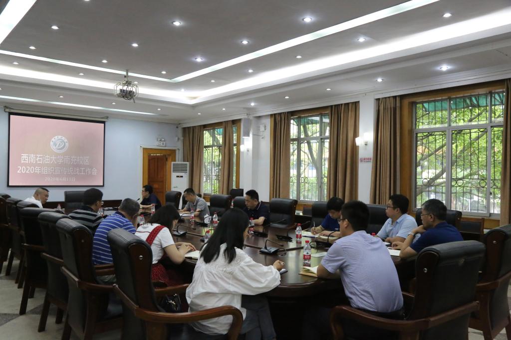 6月11日,南充校區召開組織宣傳統戰工作會議。校長助理、南充校區黨委常務副書記張光君主持會議。南充校區黨委副書記、紀委書記覃鴻飛,黨政辦公室、黨群工作部(工會)、學生工作部(團委)、保衛部、教務部負責同志,各學院分管學生工作副院長參加會議。