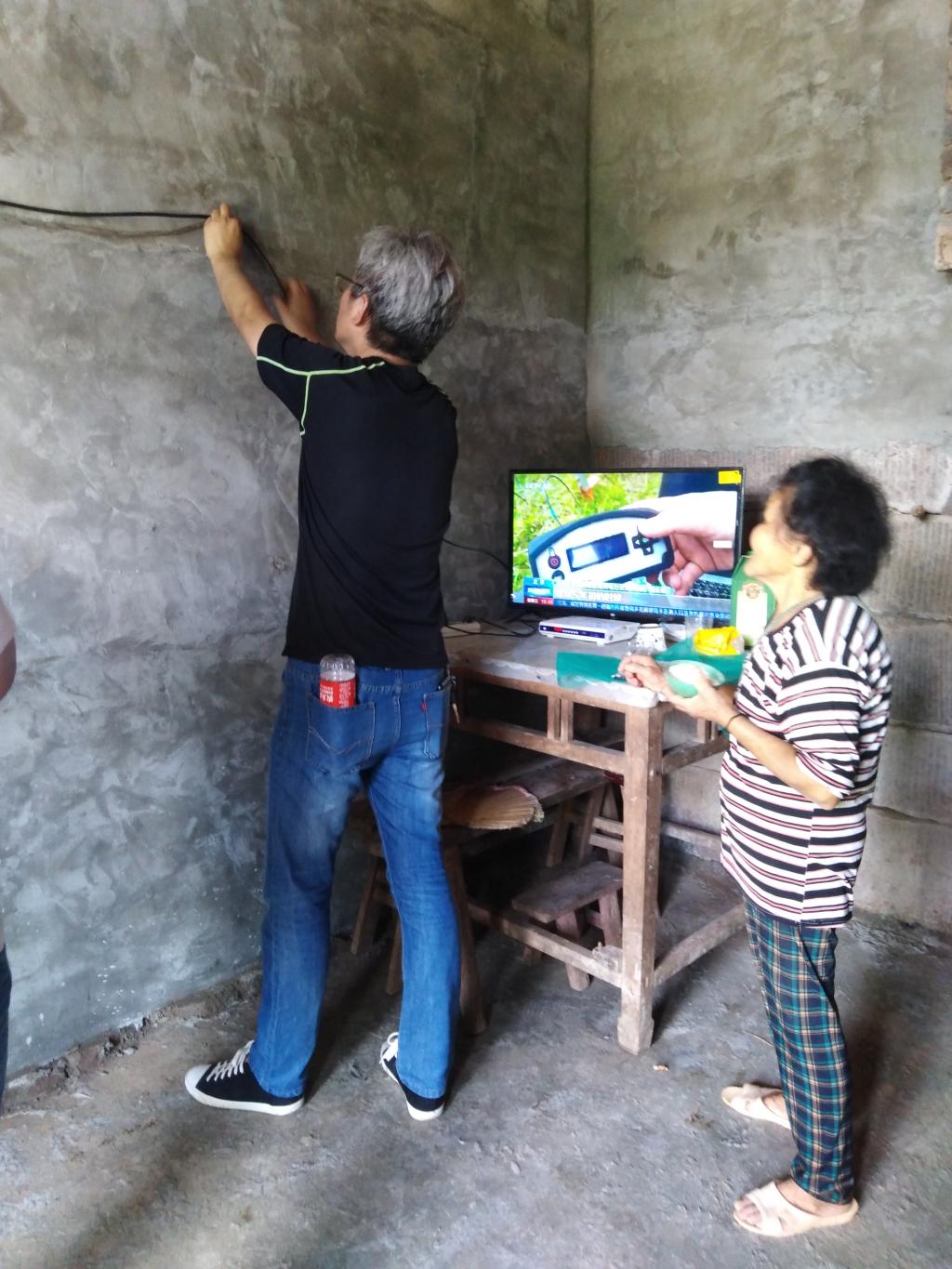 黨員同志幫助脫貧戶安裝家禽圍網場景