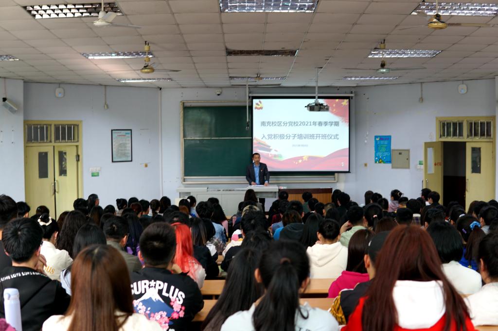 4月8日下午,南充校區(qū)分黨校2021年春季學(xué)期入黨積極分子培訓(xùn)班正式開(kāi)班。南充校區(qū)黨委副書(shū)記、紀(jì)委書(shū)記覃鴻飛出席開(kāi)班典禮并講話。開(kāi)班典禮由黨群工作部(工會(huì))副部長(zhǎng)陳萬(wàn)林主持。