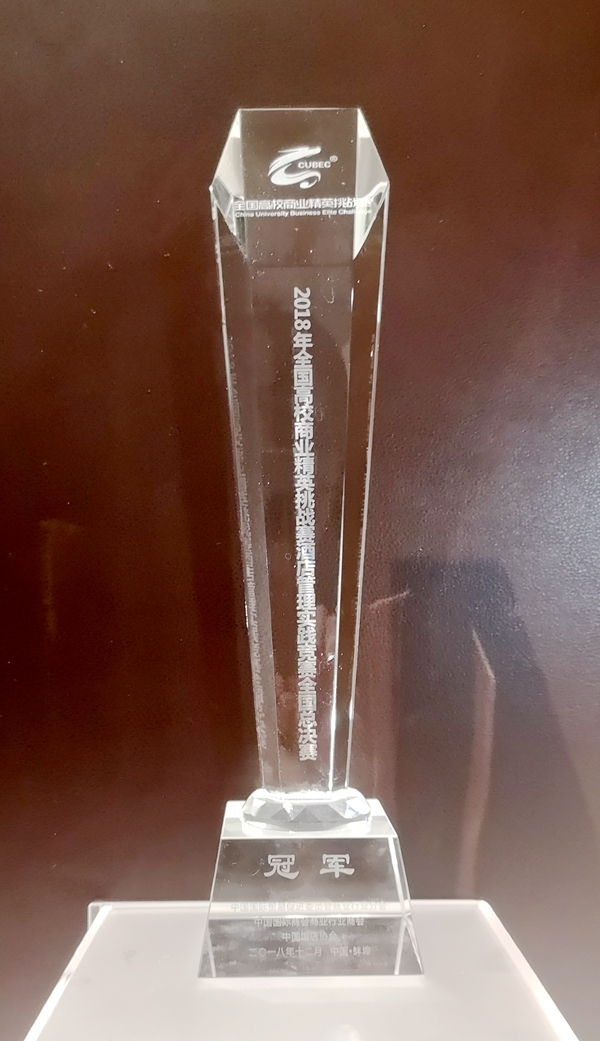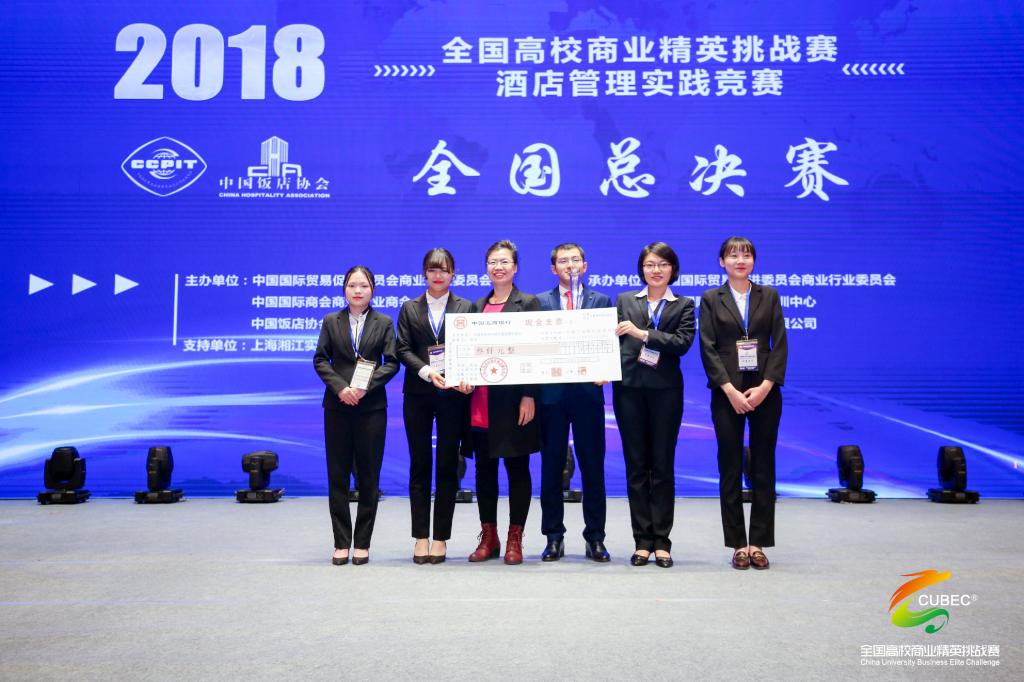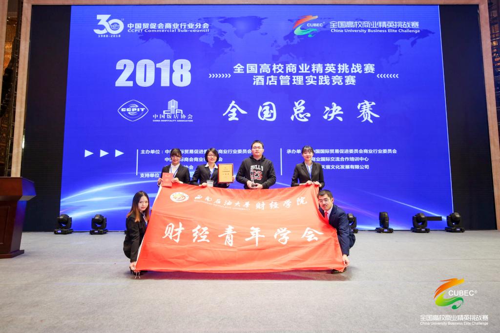12月8日、9日,2018年全國高校商業精英挑戰賽酒店管理實踐競賽全國總決賽在安徽省蚌埠市舉行。全國高校商業精英挑戰賽酒店管理實踐競賽是國內首個專門面向酒店管理專業的競賽,此次競賽組別為調研報告組和策劃方案組。南充校區財經學院酒店管理專業學生熊玉萍、楊瑞、王競樂、劉晶丹、劉庭組成的“窈窕紳士”隊初次參加調研報告組競賽,勇奪全國總決賽一等獎和總冠軍(調研報告組),還一舉獲得了2019年亞太商務活動策劃競賽入圍獎,將在明年以內地高校代表身份赴新加坡參加亞太商務活動策劃競賽。