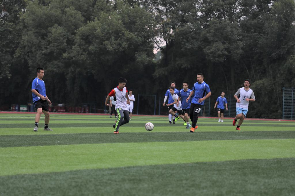 隨著裁判一聲哨響,比賽正式開始。教工隊憑借著豐富的比賽經驗,通過默契的配合、快速的傳切,率先斬獲一球。信息學院新生聯隊也毫不示弱,憑借積極地拼搶,用巧妙的短傳配合多次試圖打穿對方防線。上半場結束時,校區教工足協暫時領先。比賽下半場,參賽隊員調整心態,進行新一輪的攻守配合。每一位隊員的激情絲毫不減,在場上爭先恐后,來回傳球,場上形勢越來越膠著。一次次漂亮的穿插、一個個精妙的助攻、一次次奮力的撲救,賽場上高潮迭起,場邊的觀眾連連歡呼叫好。最終,校區教工足協獲得勝利。