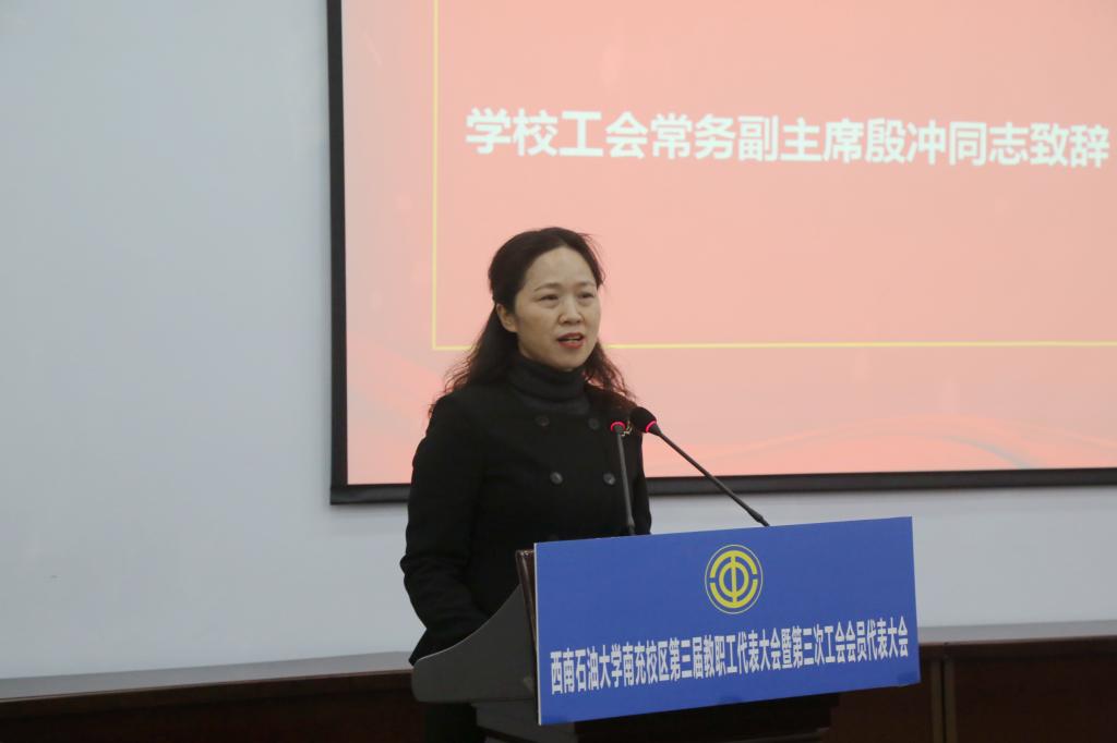 殷沖代表學(xué)校工會(huì)向大會(huì)的召開表示祝賀。她說,二級(jí)教代會(huì)是學(xué)校教代會(huì)的延伸與拓展,是學(xué)校民主政治建設(shè)的基礎(chǔ)性工作,是學(xué)校治理體系的重要組成部分。南充校區(qū)工會(huì)在校區(qū)黨委的堅(jiān)強(qiáng)領(lǐng)導(dǎo)和校區(qū)行政的大力支持下,克服諸多困難,立足工會(huì)維權(quán)服務(wù)基本職責(zé),圍繞校區(qū)中心工作,積極推進(jìn)校區(qū)民主管理、民主監(jiān)督,在關(guān)心助力青年教職工成長發(fā)展、困難職工幫扶、參與助推民生實(shí)事等方面取得了較好成效。她要求校區(qū)工會(huì),要立足維權(quán)服務(wù)基本職責(zé),持續(xù)加強(qiáng)民主管理,豐富推動(dòng)教職工立足崗位建功工作載體,完善關(guān)心關(guān)愛教職工工作體系,不斷提升服務(wù)中心、服務(wù)教職工的能力和水平,團(tuán)結(jié)校區(qū)教職工踔厲奮發(fā)、勇毅前行,為構(gòu)建高質(zhì)量教育體系、全面提高人才培養(yǎng)質(zhì)量和開創(chuàng)“一校兩地”辦學(xué)新局面貢獻(xiàn)智慧和力量。