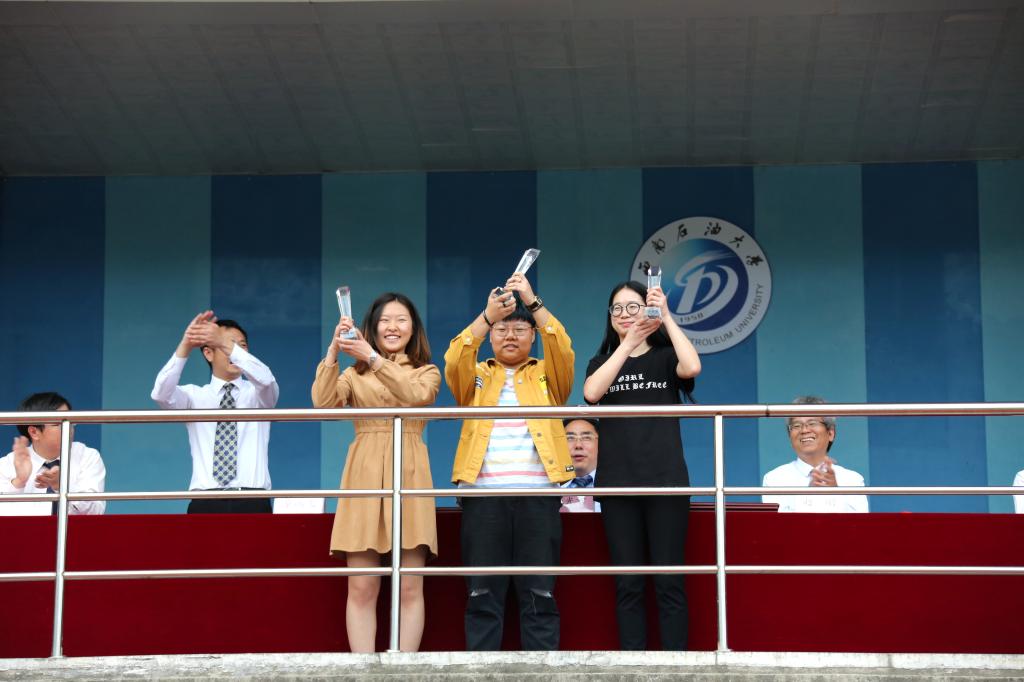 主席臺就座的領導分別為獲獎團體代表和個人隊頒獎并合影留念。(大學生全媒體中心 李明悅 王清玥 張志純 支港 瞿仕權 謝紅剛)