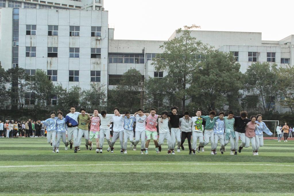 比賽開始前,同學們熱情高漲。參賽人員做好準備活動,與隊友們互相打氣,商量比賽策略。比賽進行時,同學們奮勇前進。20名隊員手挽手,腳綁腳站在起跑線上蓄勢待發,號令一響,大家步調一致,口號整齊,一步一步向前進。場外,觀眾加油吶喊聲此起彼伏,迅速點燃比賽氣氛。同學們相互幫助,相互扶持,有的隊伍盡管出現了小失誤,也毫不氣餒,扶起摔倒的隊員,迅速找回狀態后,奮起直追,爭分奪秒,最終成功到達終點。