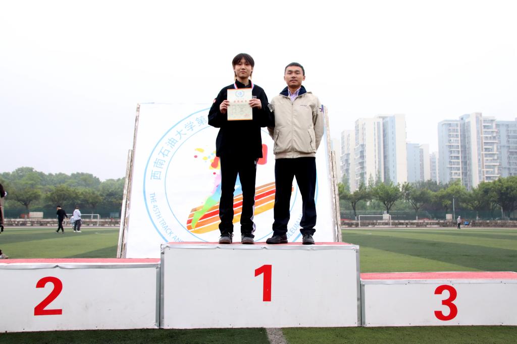 最終,工程學(xué)院能源與環(huán)境系統(tǒng)工程專業(yè)2019級羅玉以1米35的好成績斬獲女子跳高比賽第一名。