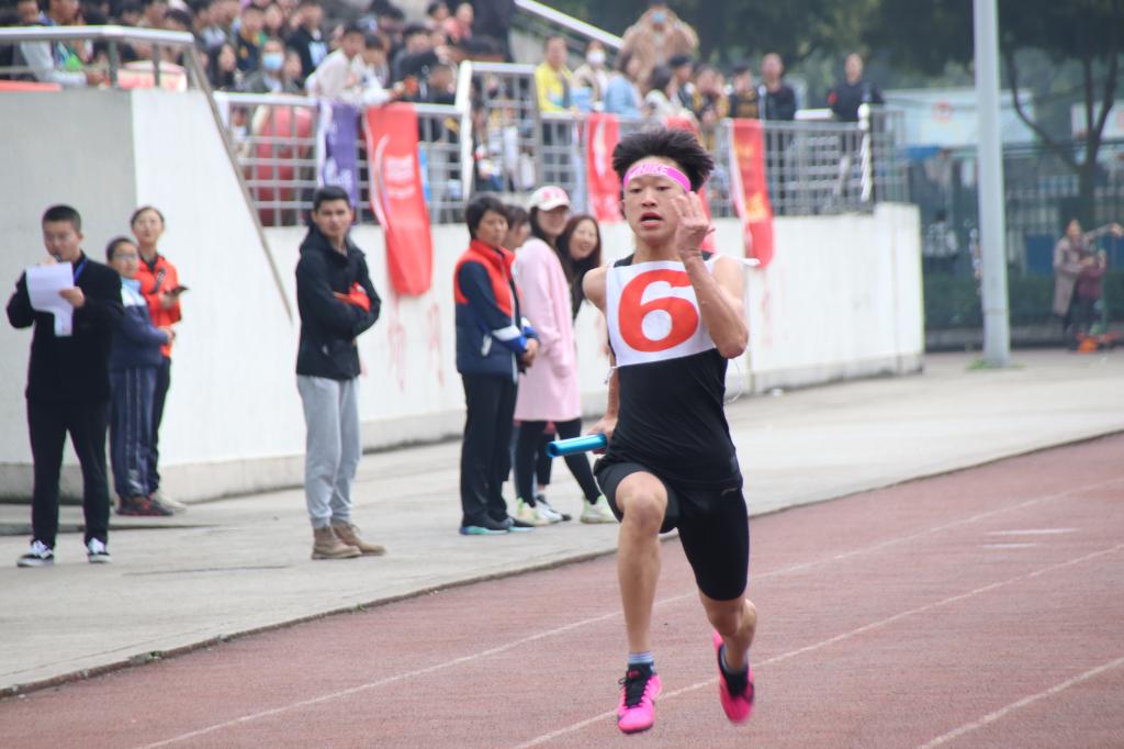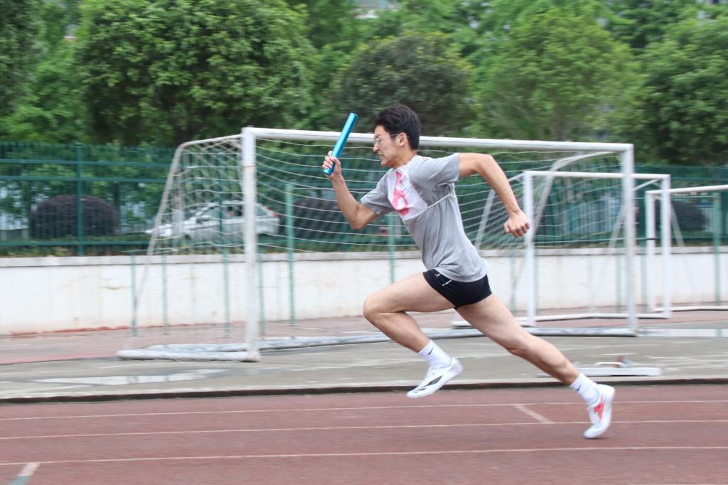 電子信息工程專業(yè)2020級秦宇帆參加男子4x100米接力比賽場景