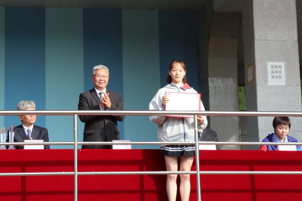 榮獲“學生最佳女運動員”稱號學生領獎場景