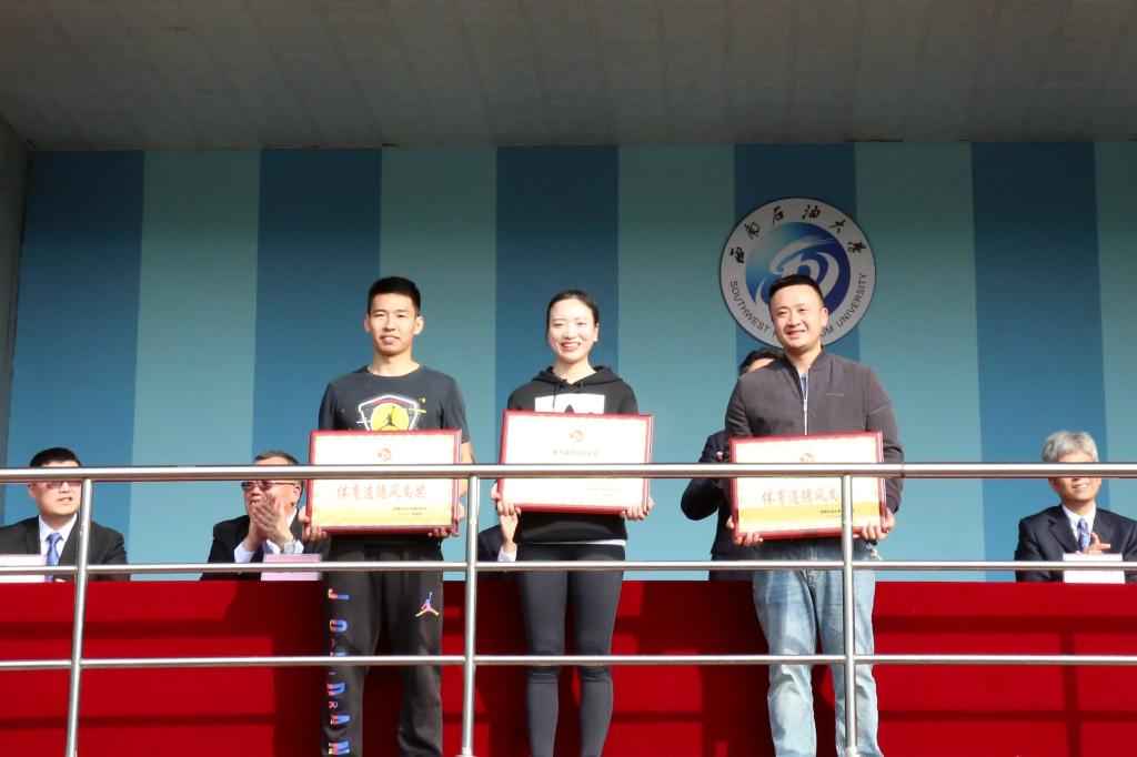 南充校區黨委副書記、紀委書記覃鴻飛致閉幕辭。覃鴻飛代表校區黨委、行政向辛勤付出的工作人員、裁判員表示衷心的感謝,向奮勇拼搏、取得優異成績的運動員及團隊表示誠摯的祝賀。他說,本屆田徑運動會比賽項目多、參與度高,共決出獎項54個、獲獎運動員246人次,展示了校區體育運動的水平和實力、師生員工“敢于拼搏、勇爭一流”的精神面貌。整個賽場秩序井然,安全有序,賽出了水平,賽出了風格。他勉勵大家在今后的工作學習中,要繼續秉持“敢于拼搏、勇爭一流,團結友愛、通力合作”的體育精神,共同開創西南石油大學和南充校區的美好未來。