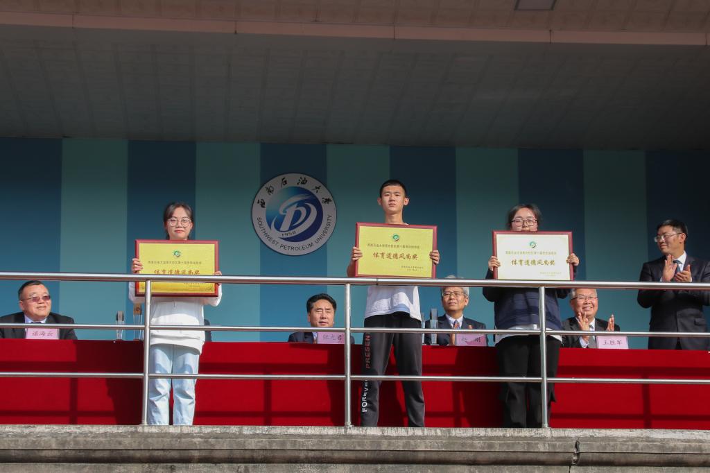 主席臺就坐的領導分別為獲獎團體代表和個人隊頒獎并合影留念。(周煊涵 大學生全媒體中心/李易軒 何安娜 劉奕宏 蔣銀全)